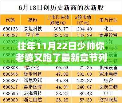 在这个数字化信息时代,网络小说已成为众多读者喜爱的阅读方式之一。“往年11月22日少帅你老婆又跑了”这部小说因其扣人心弦的情节和鲜明的人物形象,吸引了大量读者的关注,本文将围绕这一主题,为您带来最新章节列表及热门小说更新动态,让您一睹为快。