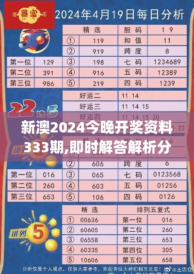 想要获取新澳2024今晚开奖资料333期的最新动态,彩民们可以通过官方网站、相关的彩票应用和社交媒体等多种渠道来查询。这些平台通常会在开奖后第一时间公布最新的中奖号码及相关分析。同时,关注一些专业的彩票分析论坛也可以帮助广大彩民获取更多的见解和交流经验。