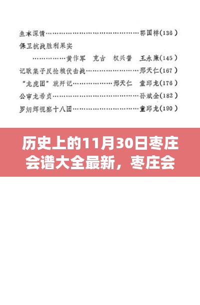 对于枣庄地区历史爱好者来说,了解历史上的重要事件,特别是特定日期如11月30日的事件,是一项非常有价值的探索,本文将指导初学者和进阶用户如何系统地搜集和整理关于枣庄地区历史上11月30日的事件资料,通过最新版的枣庄会谱大全进行详尽了解。