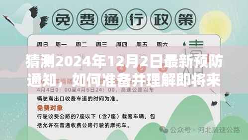随着全球健康意识的提高,预防通知在我们的日常生活中扮演着越来越重要的角色,本文将指导初学者和进阶用户如何准备并理解即将到来的“猜测2024年最新预防通知”,确保您能够紧跟时代步伐,掌握必要的预防知识和应对策略,请跟随以下步骤,轻松完成任务或学习这项技能。