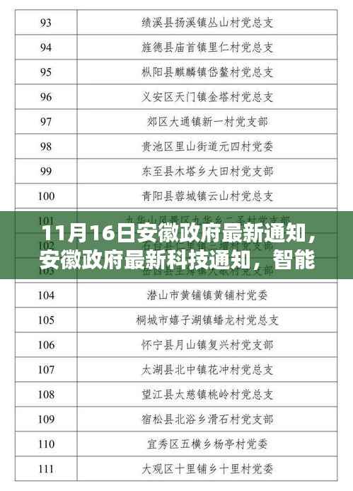 随着安徽政府11月16日最新通知的发布,一款全新的高科技产品正式进入公众视野,为我们的生活带来了前所未有的智能体验,这款集创新、智能、便捷于一体的产品,不仅彰显了科技的力量,更展现了政府对于科技改善民生的坚定决心,让我们共同聚焦这一最新科技力作,探索其独特的功能亮点与使用体验。