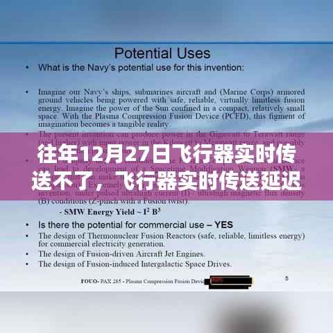 往年12月27日,一场关于飞行器实时传送技术的重大事件引发了全球关注,当日,一架搭载先进实时传送技术的试验飞行器在进行关键测试时,出现了意外的传送延迟,这一事件不仅打乱了科研团队的计划,更引发了公众对这一技术安全性和可靠性的质疑。