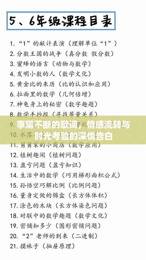 在音乐的海洋中,每一首歌曲都像是一个故事,诉说着人们的喜怒哀乐,悲欢离合,而歌曲中的歌词,则是这些故事的灵魂,它们像诗篇一样,用文字的力量触动人心,今天我们要探讨的,便是关于“事隔不断歌词”的主题,探讨歌词中的情感流转以及时间的考验。
