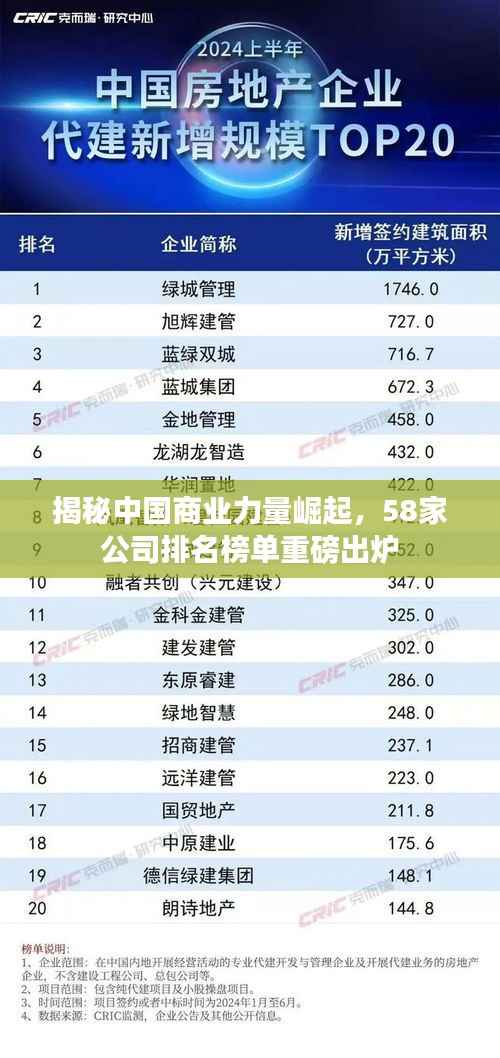 随着中国经济在全球的影响力逐渐扩大,越来越多的企业崭露头角,成为中国商业力量的代表,本文将为您揭晓中国最新的58家公司排名,带您了解这些企业的风采以及他们在国内外的影响力。