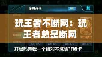 为了确保游戏体验的公平性和流畅性,玩王者不断网显得尤为重要。以下是一些不断网的好处: