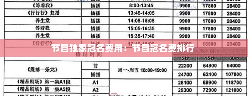 基础费用:这是独家冠名费用的核心部分,是品牌支付给节目制作方的最低费用。