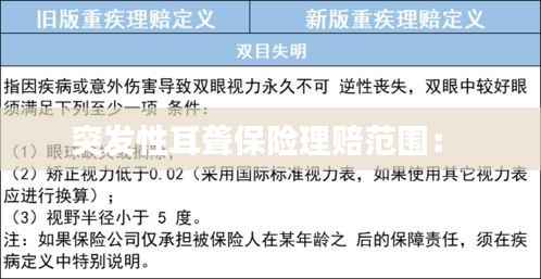 以下是突发性耳聋保险理赔范围的一些常见内容: