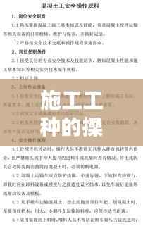 施工工种的操作规范是确保施工安全和质量的重要保障。在建筑行业中,不同的工种有不同的操作流程和安全要求。以下是对常见施工工种的操作规范进行详细阐述,旨在提高施工人员的安全意识和操作技能。
