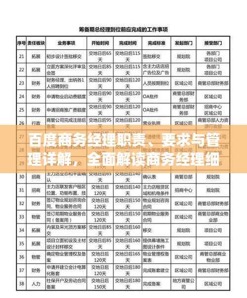 随着互联网的快速发展,企业对商务经理的需求越来越大,百度作为中国领先的搜索引擎公司,其商务经理的角色更是备受关注,本文将详细介绍百度商务经理的细则,包括职责、要求以及管理等方面。