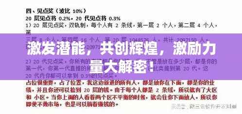 在当下社会,激励的重要性日益凸显,无论是企业、组织还是个人,都需要通过落实激励来激发潜能,提升工作效率,共创辉煌,本文将探讨落实激励的内涵、意义和实践方法。
