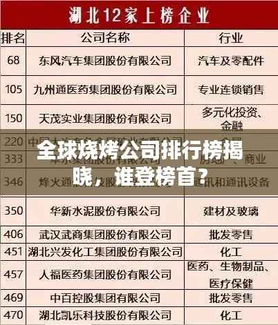 随着人们对美食的不断追求,烧烤作为一种独特的烹饪方式在全球范围内受到广泛的欢迎,本文将为您介绍全球最大烧烤公司的排名,带您了解这些引领烧烤行业的巨头。