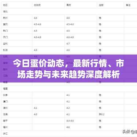 随着生活水平的提高,食品价格一直是消费者关注的焦点,蛋价更是备受关注的一项,本文将为大家带来今日蛋价的最新报道,同时分析市场动态及未来趋势。