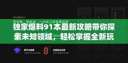 随着时代的进步和游戏产业的飞速发展,各种游戏层出不穷,玩家们对于游戏攻略的需求也日益增长,我们将为大家带来一份详尽的“91本最新攻略”,帮助大家探索未知的领域,掌握全新的玩法。