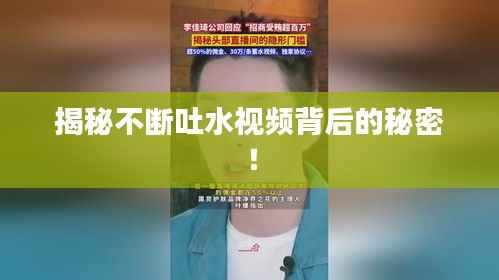近年来,随着互联网的普及和社交媒体的飞速发展,各种形式的视频内容成为了人们娱乐、获取信息的重要途径之一。“不断吐水视频”作为一种新兴的视频形式,逐渐引起了广大网友的关注和热议。