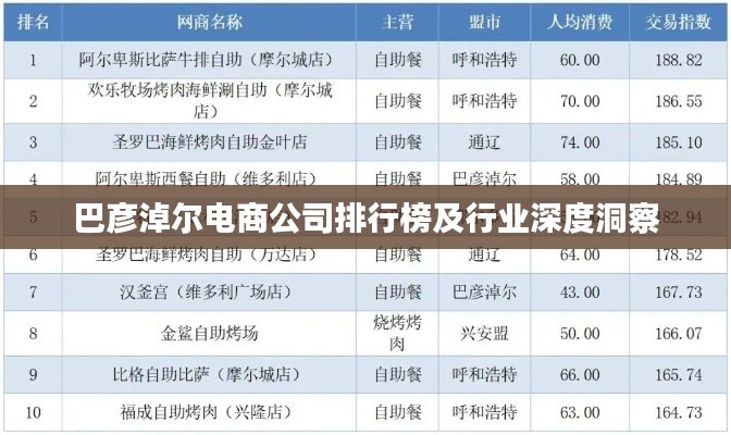 随着电子商务的飞速发展,巴彦淖尔地区的电商公司也在逐渐崭露头角,本文将为您介绍巴彦淖尔电商公司的排名及相关情况,带您了解这一地区的电商生态。