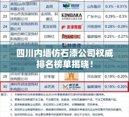 四川,这片富饶的土地,以其独特的地理和文化优势,孕育出了众多的建材企业,内墙仿石漆领域的企业亦如雨后春笋般崭露头角,本文将为您详细介绍四川内墙仿石漆公司的排名,助您更好地了解这一领域的市场格局。