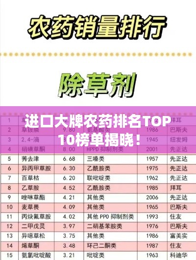 农药是农业生产中的重要组成部分,对于防治农作物病虫害、保护农作物生长具有重要意义,随着农业技术的不断发展,越来越多的进口大牌农药进入中国市场,为广大农民朋友提供了更多的选择,本文将介绍进口大牌农药排名前十名,以帮助大家更好地了解这些产品。