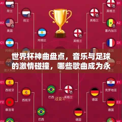 世界杯不仅仅是一场足球盛宴,更是一场音乐的狂欢,从激昂的主题曲到充满激情的现场音乐,每一首歌都成为了世界杯的经典记忆,这些神曲不仅为球迷们带来了欢乐和激情,更为他们注入了无尽的力量和勇气,这些歌曲在赛场上空回荡,激发出球员们的斗志和毅力,让他们为了荣誉和梦想而努力拼搏。