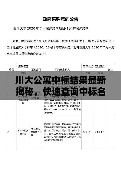 1、官方网站:访问相关政府部门或招标单位的官方网站,在搜索框中输入“川大公寓中标结果”关键词,即可找到相关公告。