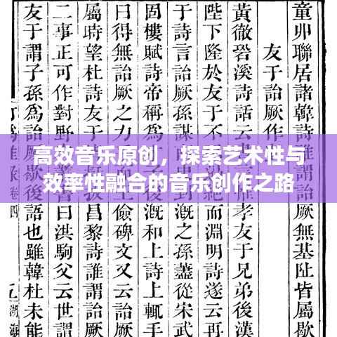 音乐,一种无形的艺术,流淌在我们的生活中,抚慰人心,激发情感,在这个时代,人们对于音乐的需求愈加旺盛,而音乐原创则是满足这种需求的源泉,高效音乐原创,不仅要求创作者在有限的时间内完成作品,更要求作品具有高度的艺术性和创新性,本文将探讨如何实现高效音乐原创,让音乐创作的艺术性与效率性相得益彰。
