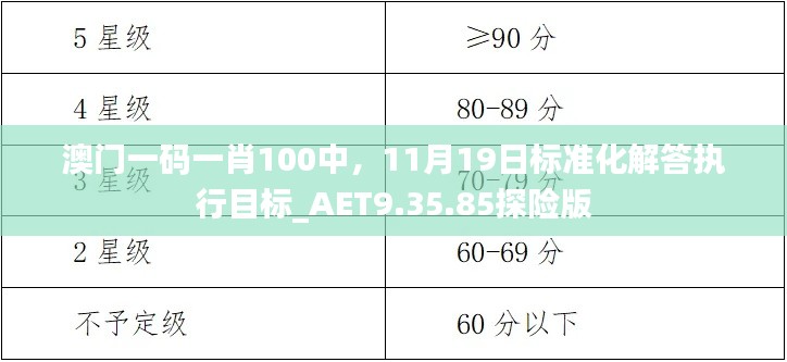 根据市委、市政府的工作部署,为进一步推进标准化建设,确保各项工作高效落实,特制定本通知。本次活动以“澳门一码一肖100中了,11月19日标准化解答落实目标_AET9.35.85探险版”为主题,旨在提升社会各界对标准化工作的认识,促进澳门地区各行业的高质量发展。