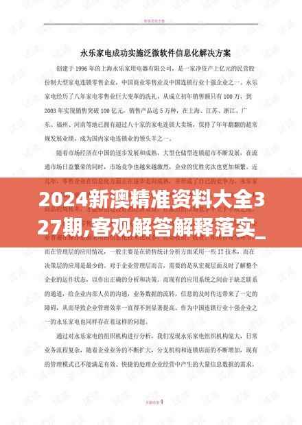 为确保新澳地区的信息对接与资源共享,特此发布2024年新澳精准资料大全第327期。本期内容旨在为相关单位和个人提供一份详实、系统的资料解读,以期在准确理解的基础上更好地落实政策与措施,促进区域的可持续发展。