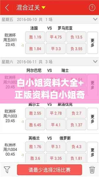 在中国传统文化中,*六合彩*与各种彩票交流密切,人们总是希望通过各种途径获取秘笈和指导。近年来,“白小姐资料大全”成了一种备受关注的资源,很多彩民纷纷寻求这一资料的帮助,期望能提升自己的中奖概率。而“正版资料白小姐奇缘四肖”则因为其精准的预测与独特的解读而被众多彩民所追捧。本文将深入探索这两者的定义、特点及其对彩民的重要性。