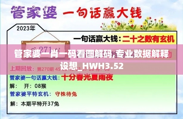 在现代社会中,数据分析与解读的应用日益广泛,尤其是在彩票和博彩行业。当人们越发依赖数据来指导决策时,如何有效地解码这些数据成为了研究的重点。本文将以“管家婆一肖一码看图解码,专业数据解释设想_HWH3.52”为中心,探讨如何通过合理的数据分析手段,提供有效的决策依据,以此提高彩票投注的成功率。